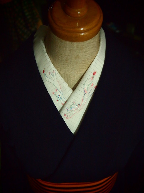なみま・さつきの手描き狐の半襟