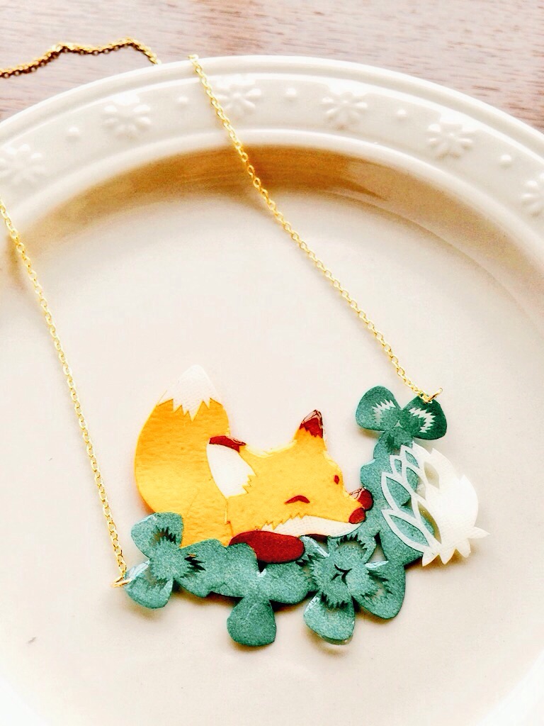 きつねをテーマにした自作のオリジナル作品の展示即売
