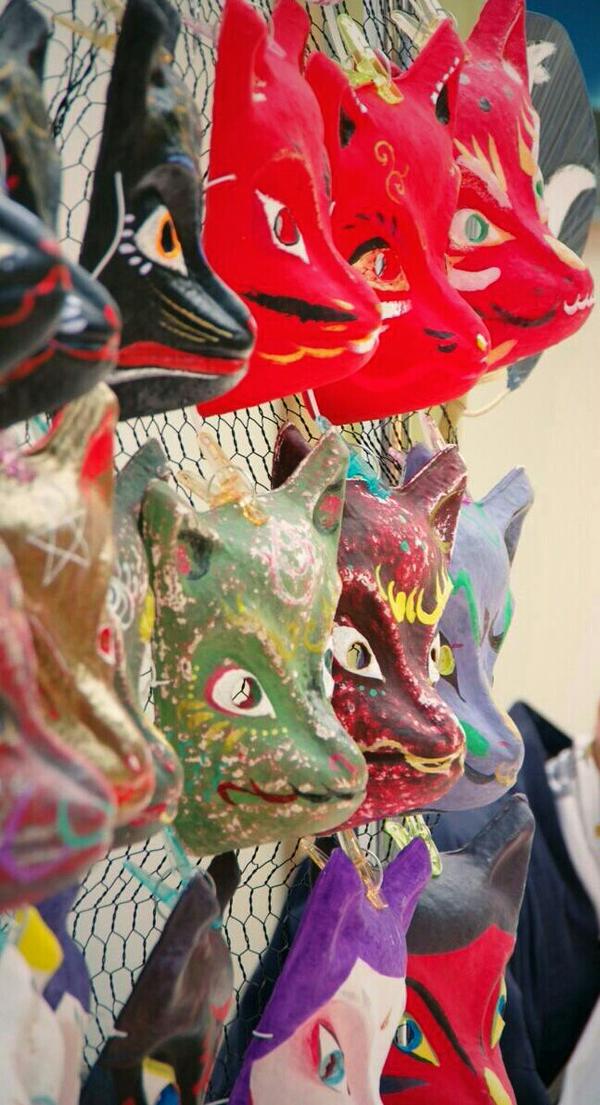 ずらっと並んだ狐のお面を目印に遊びに来て下さい♪